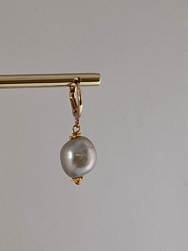 Vergulde creool ingelegd met zirkonia en grijze zoetwaterparel