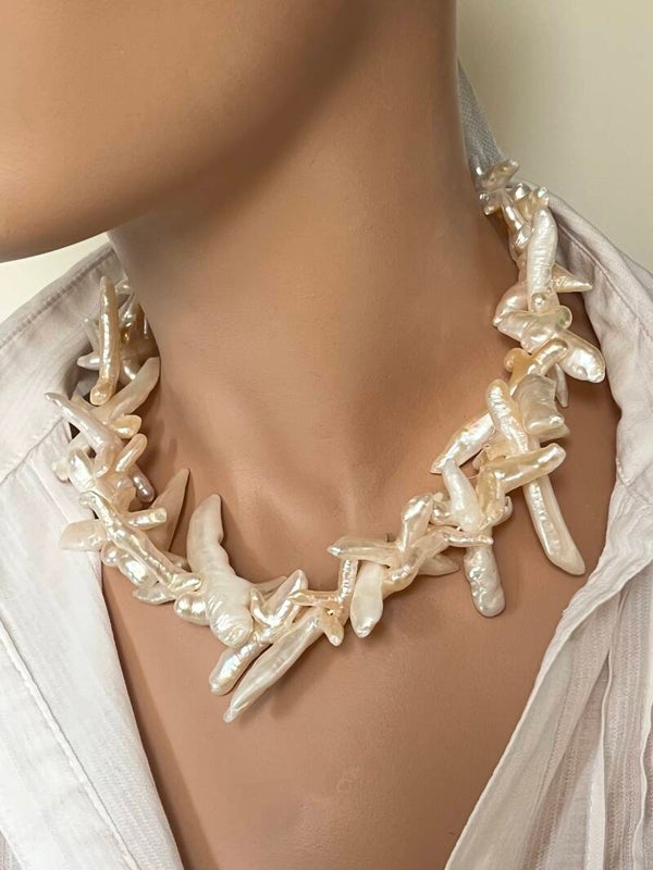 Ketiting van witte onregelmatige vingerparels met een Sterling zilveren slot